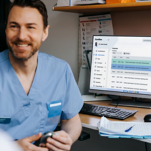 With Curoflow’s booking system, you can easily make appointment slots available in the patient portal, allowing patients to book and reschedule their visits independently. This reduces phone queues and gives patients greater freedom to manage their appointments on their own.