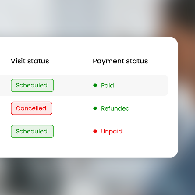 • Payments linked to bookings and clinical records