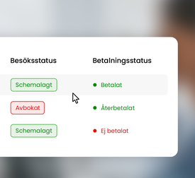 Ta betalt via kort, Swish eller Klarna – kopplat direkt till bokning och journal. Automatisk återbetalning, påminnelser och integration med Stripe.