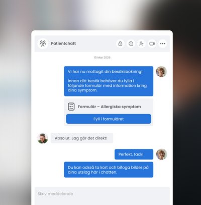 För dig som vårdgivare betyder det tydligare arbetsflöden, kortare telefonköer och mer tid för det som faktiskt kräver din kompetens. Du ser vad som är på väg in, kan prioritera rätt och kommunicera direkt med patienten – via chatt, video eller formulär – utan att byta system.
